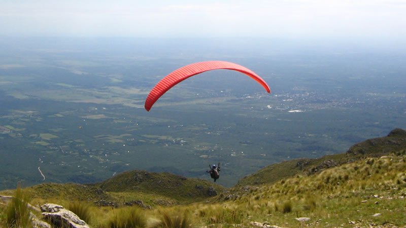 La Villa de Merlo es especial para la práctica de este deporte, ya que el cordón serrano tiene un promedio de 2000 metros de altura y dos plataformas de despegue. Subiendo por la Ruta Provincial Nro. 5 y pasando el Mirador del Sol se encuentran los dos sitios de partida: uno antes de llegar a la finalización de la ruta y el otro una vez que termina el pavimento en el filo de la sierra y después de recorrer unos 3 km hasta llegar a la confitería Mirador de los Cóndores. En ambos casos se realizan vuelos biplazas acompañados por instructores experimentados.